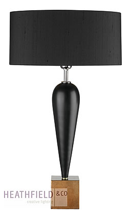 Medium ebony and gilt table lamp shown with 14" Thin Drum silk shade. Height shown below with and without shade. **shade not included in price**