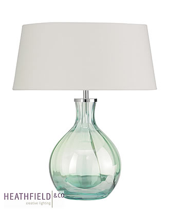 Optic glass lamp base finished with antique lustre effect. Shown with 14" French Drum linen shade. Height shown below with and without shade. **shade not included in price**