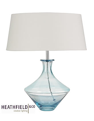 Shaped glass lamp in subtle colours. Shown with 14" French Drum linen shade. Height shown below with and without shade. **shade not included in price**