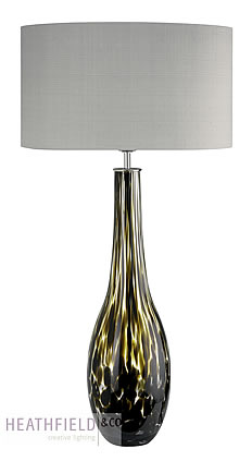 Hand blown glass lamp shown with 16" Flat Drum silk shade. Height shown below with and without shade. **shade not included in price**