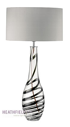 Hand blown glass table lamp shown with 16" Flat Drum silk shade. Height shown below with and without shade. **shade not included in price**
