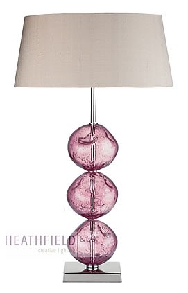 Hand blown and finished lamp using a technique to create small bubbles. Shown with 14" French Drum silk shade. Height shown below with and without shade. **shade not included in price**