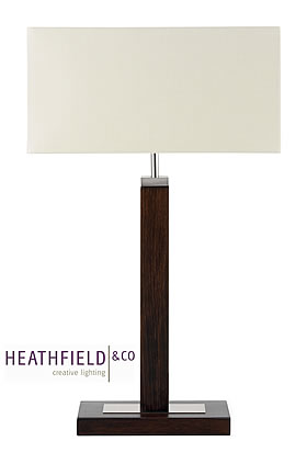 Wenge stain lamp with chrome detailing. Shown with 16" Rectangle linen shade. *** shade not included in price *** Size is stated below without and with shade shown.