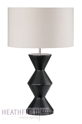 Table lamp with ebony waxed finish. Shown with 16" Flat Drum silk shade. *** shade not included in price *** Size is stated below without and with shade shown.