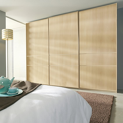 Stylish sliding and folding-door wardrobes with wooden finish doors in a wide range of sizes. Wardrobe comes with 1 hanging rail and 2 shelves per section. A range of accessories is available.